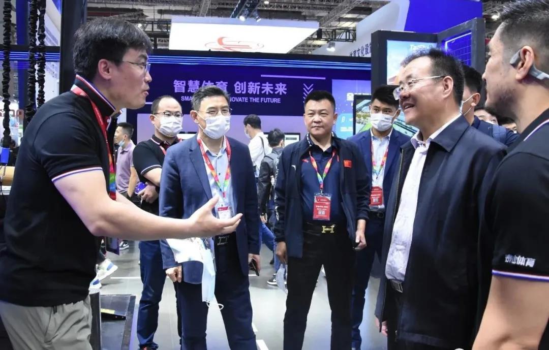展期内,领导、嘉宾莅临参观米兰体育展厅,体验产品、指导工作,对展厅内的高端装备和智慧健身生态产品表示肯定。
